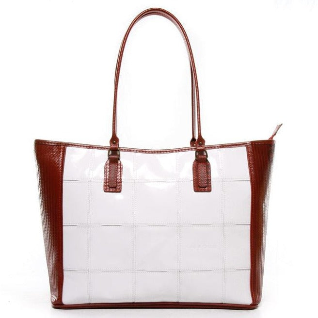 このClassic Tote Bagは余剰レザーと使用されなくなった消火ホース、軍用パラシュートの生地を使用して、ひとつひとつハンドメイドで作られています。13インチのノートパソコンが収納できるサイズで、底部のマチが深いのでマイボトルも安定良く入ります。内部にはジップ式のポケット付きで日常使いに最適のバッグです。ひとつひとつハンドメイドで生産されています。様々なカラー展開をお楽しみ頂けますが、Elvise & Kresseで取り扱っている生地には数に限りがあるため、時期によっては取り扱いのない商品もございます。お気に入りのカラーを見つけたら是非その機会にお買い求めください。