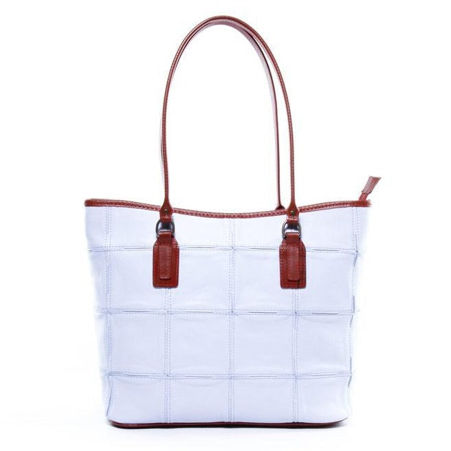 このSmall Tote BagはBurbarryによって廃棄された余剰レザーと使用されなくなった消火ホース、パラシュートの生地を使用してひとつひとつハンドメンドで作られています。12インチのノートパソコンやタブレットなどが収納できるサイズです。